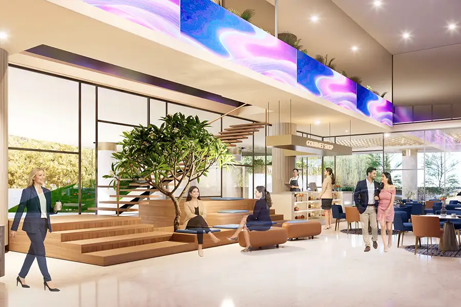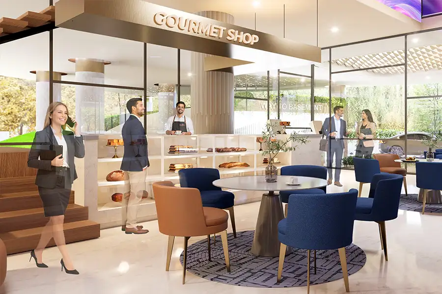 - Modern Work-Life Integration: The inclusion of a gym, cafeteria, and social hubs ensures high tenant retention and employee satisfaction, making it a “Future-Proof” business investment.